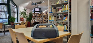 Soundbox in Ramersdorf Die Stadtbibliothek Ramersdorf bedankt sich herzlich für die Soundbox. Wir können das neue Tool bestens bei Bibliothekseinführungen, Workshops oder weiteren Formaten einsetzen und sind damit unabhängig von der Nähe zu Steckdosen oder Techniksäule mit Lautsprechern. Hör- und Musikdateien sowie selbst erstellte Audioaufnahmen von Teilnehmer*innen lassen sich damit bestens abspielen. Auch für Outreach-Veranstaltungen ist die Soundbox perfekt einsetzbar. Stadtbibliothek Ramersdorf Führichstr. 43, 81671 München NEU: Telefon + 49 89 233 77 23 57, 233 77 25 89 │ Fax 233 77 23 59 |