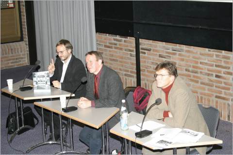 Ulrich Chaussy, selbst Buch- Radio- und Filmautor in Sachen "Weiße Rose", packte vor Beginn der Tour in der Stadtbibliothek Obergiesing einen Teil seiner Arbeitsbibliothek zum Thema aus einem Koffer auf den Tisch, beginnend mit Inge Aicher-Scholls schmalen, weltweit verbreiteten Buch "Die Weiße Rose" aus dem Jahr 1952 bis zu Hermann Vinkes aktuellem, soeben erschienenem Buch "Fritz Hartnagel - der Freund von Sophie Scholl". Fazit seiner frei kommentierten Bibliographie (20 Minuten für 20 Bücher): Was wir heute über die Weiße Rose wissen können, wissen wir aus Büchern. Die Bücher spiegeln verschiedene Sichtweisen. Und ihre Autoren reagierten auf neu entdeckte Quellen, die manchmal einen Schub an neuem Wissen bedeuteten, wie etwa die nach der Wende in ehemaligen DDR - Archiven zu Tage gekommennen Gestapo-Verhörprotokolle. 1982 entstanden Michael Verhoevens erster Kinofilm, begleitet von einem Buch, das seine umfangreichen Recherchen dokumentierte. Das wiederholte sich 2004/2005 beim aktuellen Kinofilm "Sophie Scholl - die letzten Tage", bei dem Chaussy für die historische Recherche zuständig war und seine Ergebnisse im gleichnamigen Buch zum Film präsentiert hat.