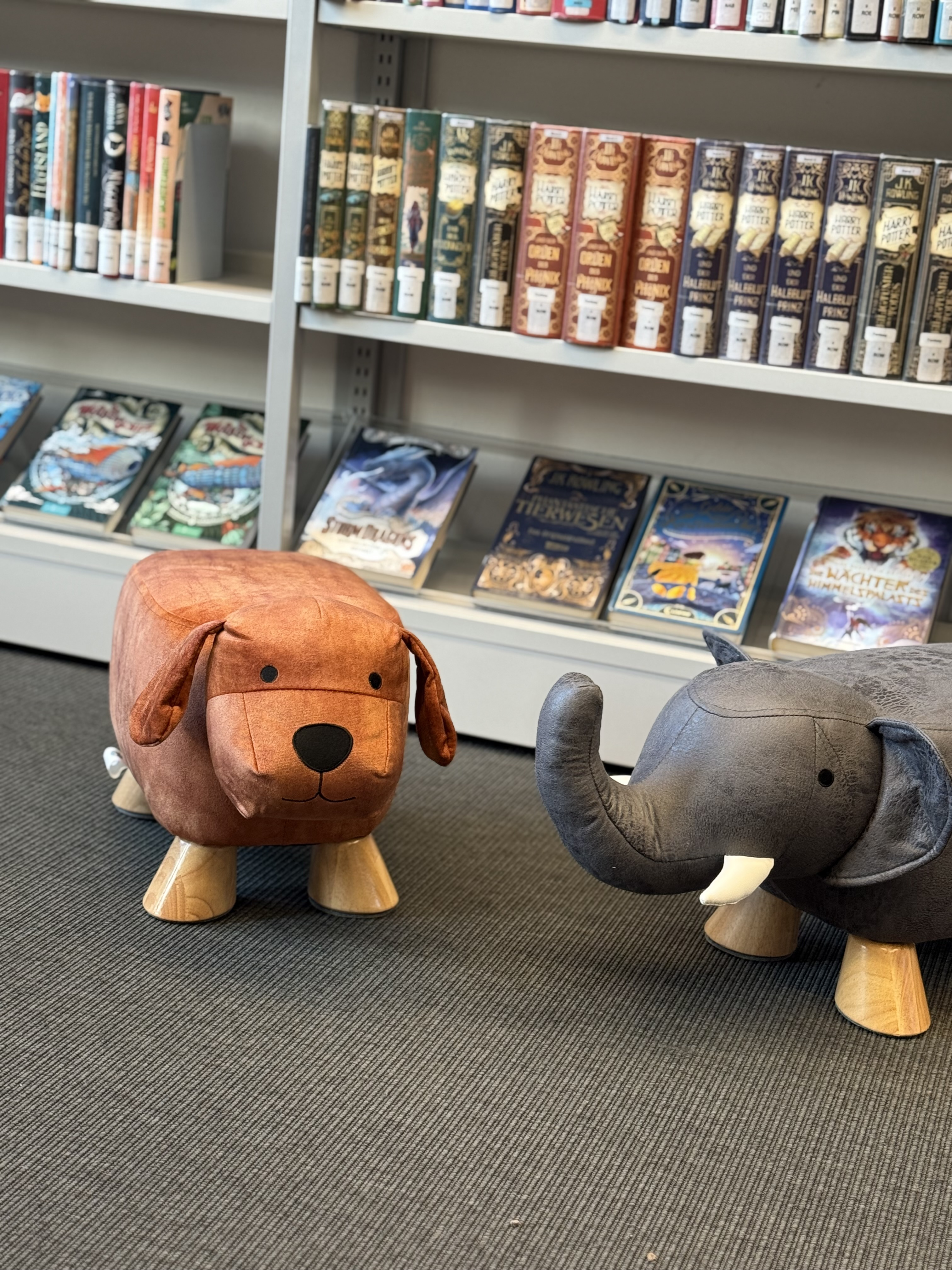 Elefant und Hund Lieber Förderverein, ... die Kinderabteilung unserer Stadtbibliothek Am Westkreuz ist modern und hell eingerichtet. Allerdings auch etwas nüchtern. Was ein bisschen fehlt, ist das Kuschelige und Gemütliche für Kinder. Wir freuen uns sehr, dass wir durch den Förderverein Büchr & mehr e.V. zwei große Stofftiere erwerben konnten, mit denen die Kinder nun kuscheln können. Da wir bereits einen Teddy haben, konnten wir beobachten, dass die älteren Kinder ihm vorlasen. Auch wenn wir keinen echten Lesehund haben, haben wir nun den Berner Sennenhund und den Elefanten aus Stoff, die sicher auch bald Geschichten zu hören bekommen. Herzlichen Dank! Stadtbibliothek Am Weszkreuz Radolfzeller Str. 13 81243 München Tel. 089 233 772427 stb.amwestkreuz.kult(at)muenchen.de [mehr lesen][schließen] |